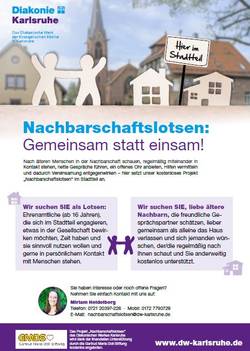 Seit Januar 2021 wird das Projekt „Nachbarschaftslotsen“ vom Diakonischen Werk Karlsruhe auch in Wettersbach und Umgebung angeboten. Das Angebot gibt es bereits in der Oststadt und in Durlach-Aue. Beim Nachbarschaftslotsenprojekt geht es darum, passende ehrenamtliche Lots*innen (engagierte Nachbar*innen) an Senior*innen zu vermitteln und somit für eine gute Vernetzung im Stadtteil zu sorgen. Die Lots*innen sollten Lust haben, regelmäßig nach älteren Menschen in der Nachbarschaft zu schauen, sie in ihrem Alltag zu begleiten und mit ihnen in Kontakt stehen, nette Gespräche führen, ein offenes Ohr anbieten und gegebenenfalls Hilfen vermitteln. Hierdurch soll einer Vereinsamung entgegengewirkt und die Teilhabe am gesellschaftlichen Leben gefördert werden. Deshalb werden auf der einen Seite ehrenamtlich engagierte Lots*innen gesucht, die in der Gesellschaft etwas bewirken möchten, gerne im persönlichen Kontakt zu Menschen stehen, Zeit haben und dies sinnvoll nutzen wollen. Auf der anderen Seite werden liebe ältere Nachbarn gesucht, die freundliche Gesprächspartner schätzen, lieber gemeinsam als alleine das Haus verlassen und sich jemanden wünschen, der regelmäßig nach ihnen schaut und sie anderweitig unterstützt. Die Möglichkeiten des Engagements sowie die Häufigkeit der Unterstützung gestalten sich individuell und richten sich nach den Bedarfen und Wünschen der Lots*innen und der Senior*innen. Dank der Finanzierung der Gertrud Maria Doll Stiftung wird das Projekt kostenlos angeboten.