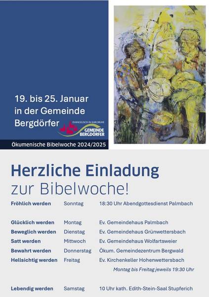 Wenn Gott ins Spiel kommt, fängt die Freude an. Davon erzählen die sieben Zeichen des Johannesevangeliums (Joh 2-11). Auf der Hochzeit zu Kana fließt süffiger Wein in Strömen und macht Lust darauf, mehr von Gott zu erwarten: von unerwarteten Heilungen über Bewahrung in den Stürmen des Lebens und das Ende des Hungers bis zur Auferweckung vom Tod. Von alledem berichtet der Evangelist Johannes mit kraftvollen Worten und in anschaulichen Bildern. Die Ökumenische Bibelwoche im Januar 2025 in der Gemeinde Bergdörfer lädt dazu ein, in Geschichten einzutauchen, die einen Vorgeschmack auf den Himmel geben.