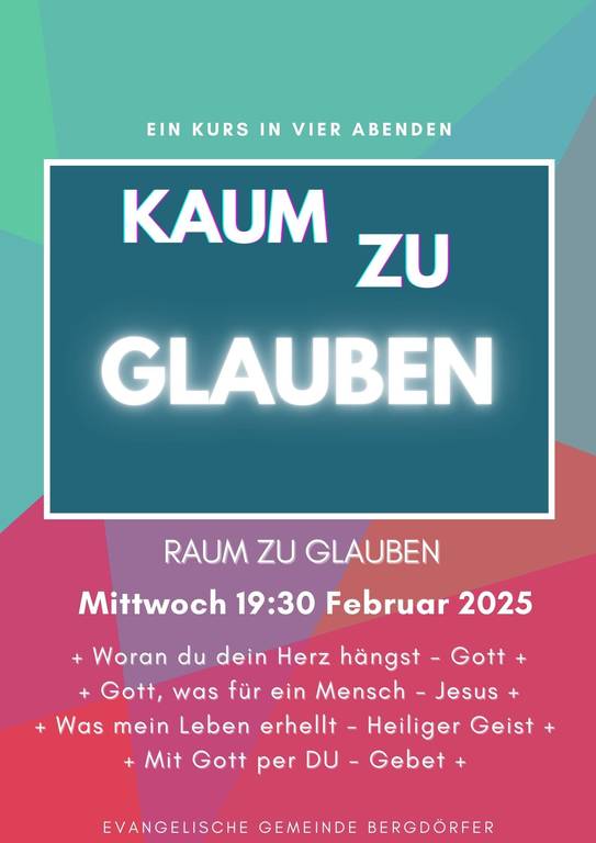 In vier Abenden im Kirchenkeller Hohenwettersbach wollen wir uns gemeinsam auf den Weg machen, mit anderen Glauben zu entdecken, Fragen zu stellen, eigene Glaubensperspektiven zu weiten, von anderen zu hören, gemeinsam zu feiern – eine gute Zeit mit Gott, den Nächsten und uns selbst haben.